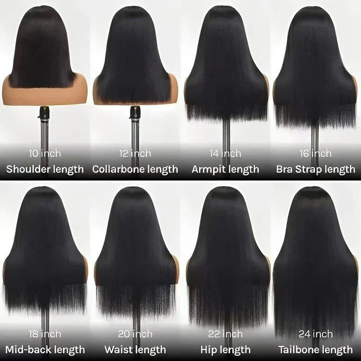 A popular mid-length choice; falls at the upper back. - 18 inch-Mid-Back Length